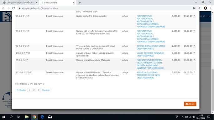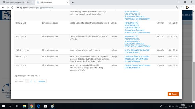 Tako je primjerice dana 08.08.2017 godine Vlada ŽP sklopila s poduzećem PGI Klaić ugovor o javnoj nabavki usluga izravnim sporazumom u vrijednost od 3 tisuće maraka. Pred sam kraj mandata, vlada ŽP sklopila je s poduzećem PGI Klaić ugovor o nabavki arhitektonskih usluga u vrijednosti od 3600 marka. Oba ugovora su sklopljena direktnom pogodbom.