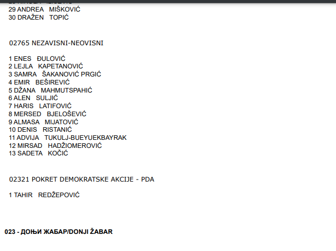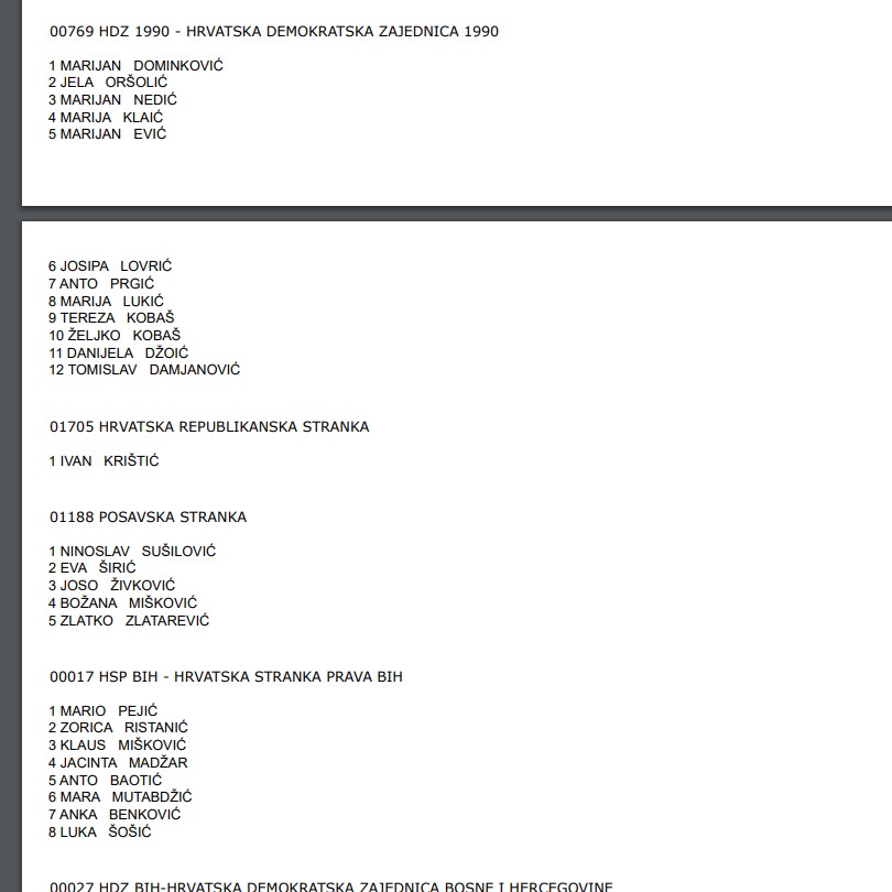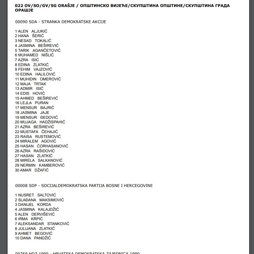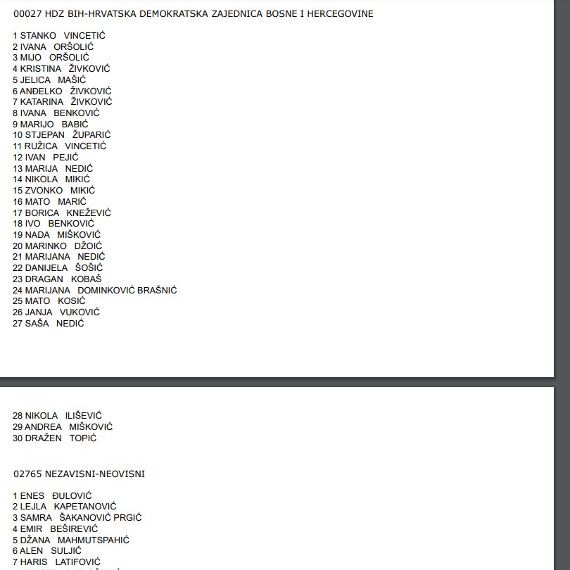 Pregled svih listi i kandidata pogledajte u priloženim fotografijama.